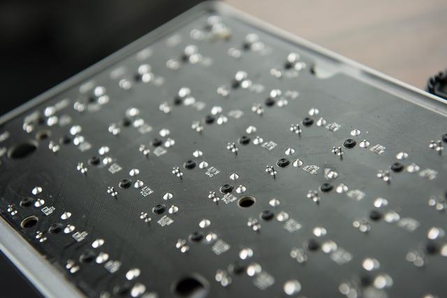 下面来看看PCB细节,话说目前国产机械键盘的制制工艺曾经相当成熟了,这是一个8 X 16点阵LED驱动,大要是年纪大了,因为富勒G87采用的悬浮式按键设想,这导致了要想将PCB取铝合金面板分手就需要将轴体也全数拆掉!