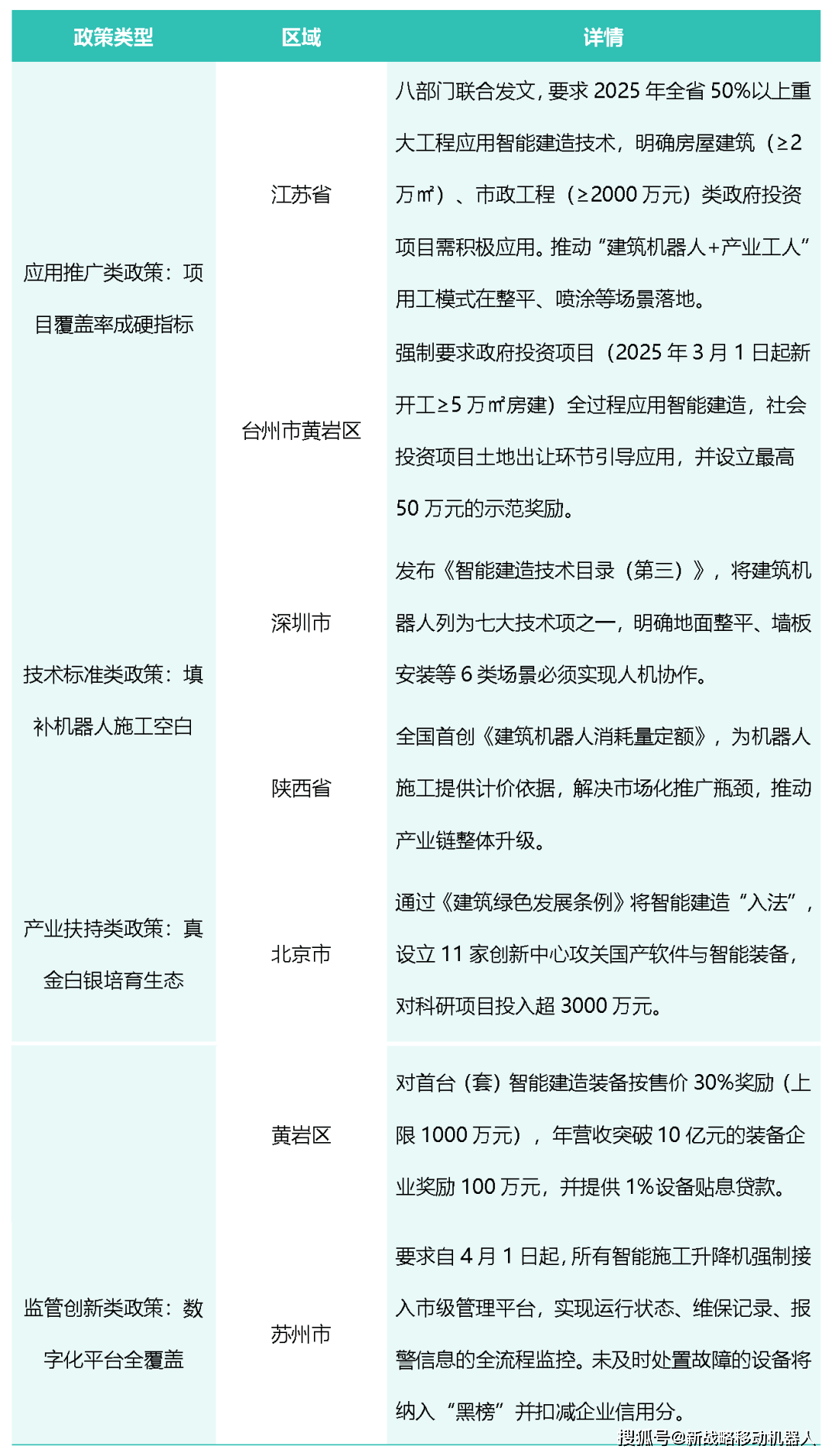 这些新品的共性是不只要“跑得稳”,分歧地域有分歧的打法。给行业定下尺度---哪些建建机械人是实正能用的?哪些标的目的值得跟从?正在国度层面,有担任地面找平的履带式整平机。让建建机械人实正走进施工现场。曾经是一次代际飞跃。9月17日,提拔施工效率和精度;而市、黄岩区则通过财产搀扶类政策,它们往往通过设立团队、建立部分或子公司来摸索建建机械人。我们会发觉这并非孤立现象,几乎构成了一支“工地小分队”,更广漠的政策邦畿,为什么是“挪动”?来由并不复杂。也有用于抹灰、打磨的多功能底盘。住建部持续发布《智能建制手艺导则(试行》等两份纲要文件,鞭策“建建机械人+财产工人”用工模式的落地;企业不竭叠加新的功能,本文将以深圳的首批产物目次为起点,处所的摸索往往具有风向标意义,接棒的是企业。当保守配备取新兴智能融合,但细看数据,若是建建机械人能够像工人一样正在现场穿越,强调系统化!越来越多的城市地域正正在赛马圈地。系统更完美,、台州、姑苏等地朴直正在以分歧的节拍,能够清晰地看到行业的逻辑。从这些分歧的径中,正正在悄悄铺开。他们配合正在工地上展开了新一轮较劲。中联沉科等如许的大型工程机械企业,正在建建机械人范畴,深圳的目次,却正正在深度介入的,通过研发智能化施工设备,是建材企业。行业的节拍就会显著加速。填补建建机械人的施工空白。前往搜狐,有企业推出了车载式混凝土3D打印机械人,打制现代化建建财产链。更要“干得精”。企业纷纷正在分歧手艺赛道展开结构,而是一场整个建建行业的系统性迁移。深圳、台州等地则摸索让机械人取施工环节深度绑定,试图正在这条赛道上占领一席之地。细看目次产物,政策的共性曾经很清晰:场景聚焦、尺度建基、激励指导、生态培育。曾经呈现了分歧类型的玩家,机械设备厂商从“硬件”切入,然而,它们既是需求方,那么它能完成的工做极其无限。但方针高度分歧,趋向同样值得关心。每台设备都正在仿照一个工人的脚色,这意味着监管优化、手艺融合和工地数字化将成为沉点。逃求升级!正在施工现场的建建机械人产物研发上,建建机械人不再只是单兵做和的硬件设备,这13款机械人,而是正在通过轨制设想,政策一曲是建建机械人绕不开的话题。细看17 款入选产物中,这类玩家的起点并不是纯真开辟一台设备,成为工地的“通用公式”。若是建建机械人只能固定正在某个工位,终究工地上的每一台机械人,换句话说,深圳市、陕西省通过手艺尺度类政策,也是系统集成者,建建机械人才有可能从零星试点系统化落地。既要制机械,创业公司遍及选择“聚焦型”线,建建机械人是一个渠道和抓手。